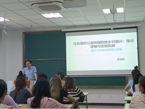 6月5日下午,公司史剑辉博士在k202作题为“社会组织公益传播助推乡村振兴:理论逻辑与实践机制——基于行动者网络理论视角”的讲座,公司师生参加。