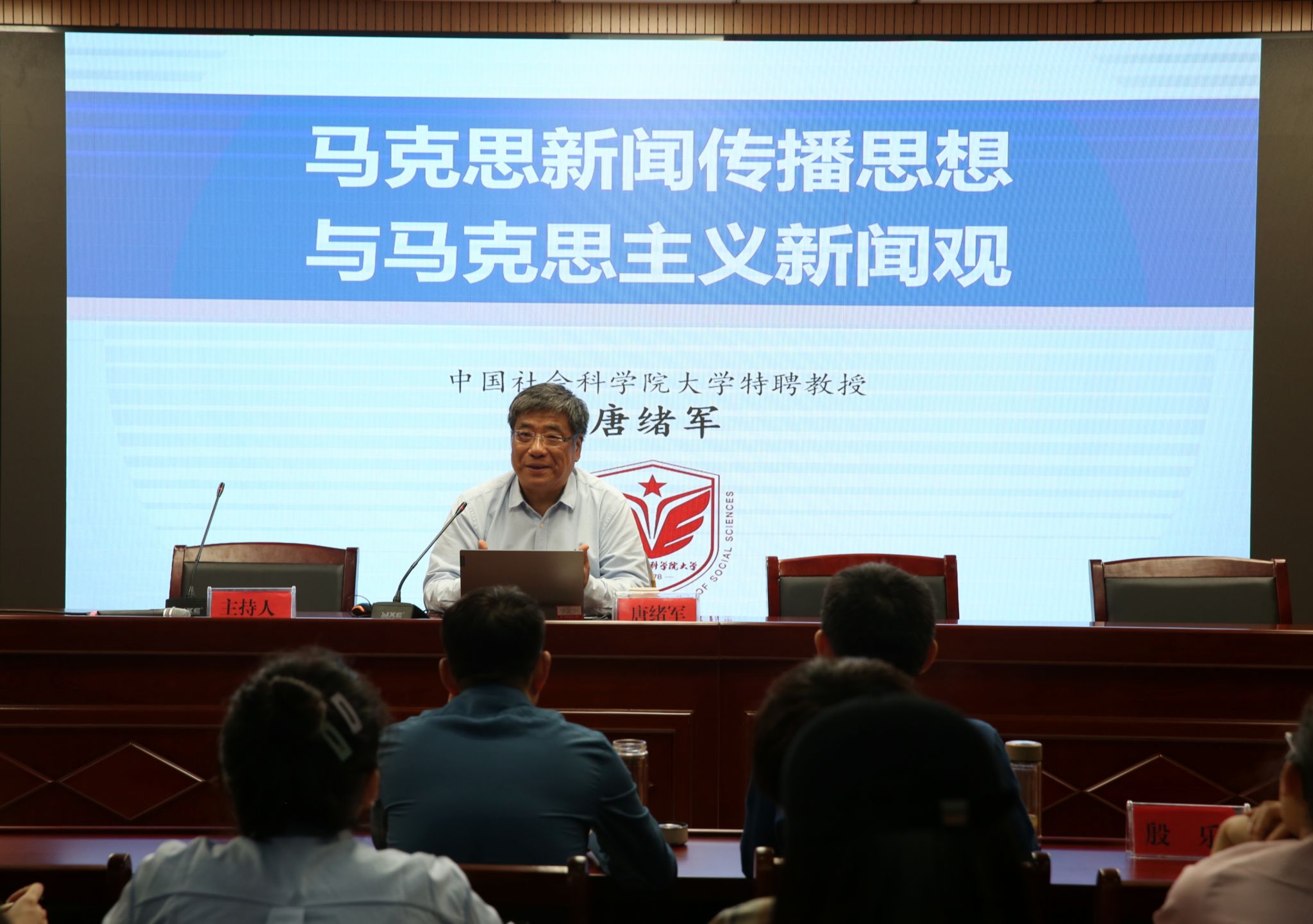 4月21日上午,中国社会科公司新闻与传播研究所研究员、中国社会科公司大学特聘教授、博士生导师唐绪军在O102作了题为“马克思新闻传播思想与马克思主义新闻观”的专题讲座。讲座由太阳成集团122ccvip副经理王业明主持,太阳成集团122ccvip部分教师、本科生及研究生150余人聆听了讲座。