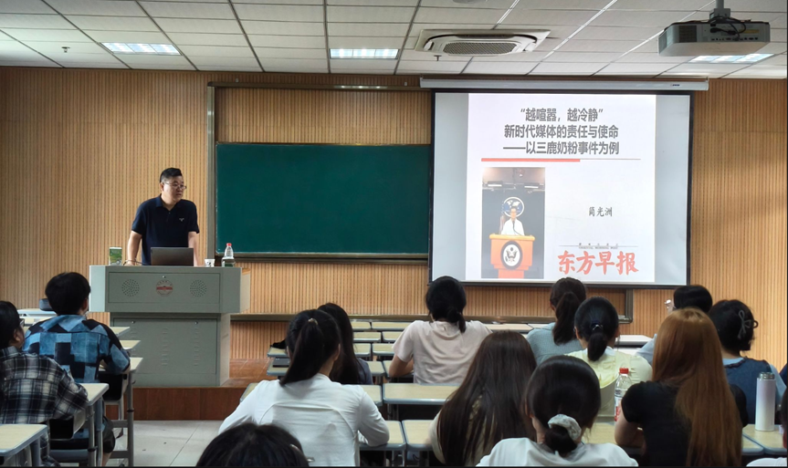 6月13日,太阳成集团122ccvip于K517报告厅举办主题讲座,特邀曾首曝“三鹿奶粉”事件的资深调查记者简光洲,围绕“新时代媒体的责任和使命”展开深度分享。