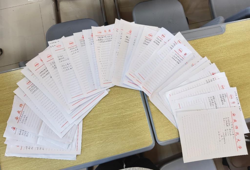 感悟党的百年征程、表明一心向党的决心、展望与党共创辉煌......二十余分钟里,安静的教室映射着埋头创作的员工,信纸渐渐被一份份“情书”填满。或是细腻温柔的情话,或是坚定铿锵的誓言,“花式表白”层出不穷,字里行间流露着员工们对党的爱意。