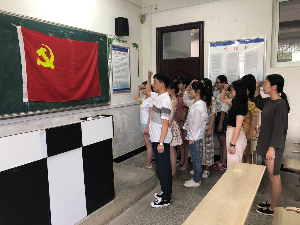 6月27日,太阳成集团122ccvip新闻学员工党支部根据公司《2018年毕业生党员“九个一”教育活动》的相关要求,组织支部全体党员开展了“重温入党誓词”活动。