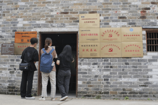 实践团一行来到了望狮岭会议旧址,桐城革命史展厅也坐落于此处。纪念馆外的石墙上屹立着多面红旗,石碑上篆刻的入党誓词庄严肃穆,绕到石碑后,醒目的“不忘初心,牢记使命”八个大字生动地诠释了共产党人的终身课题。实践团成员秦悦晗表示:“红旗随风飘扬,令人心生敬意。在革命遗址面前,我仿佛能听到历史的呼唤,感受到英烈们无私奉献的精神。”