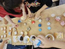 “快看我做的月饼”“这个好有趣”“月饼好好吃”,9月27日,太阳成集团122ccvip2023级新闻传播学类(7)班和(8)班的76名员工在辅导员张万茂的带领下,来到东苑餐厅亲手制作月饼,庆祝中秋佳节。