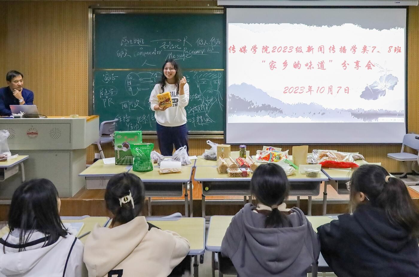 “真是太满足了!我几乎把分享会上所有的美食都尝了一遍!”新闻传播学类专业2023(8)班的刘欣怡向周围的同学们不断“安利”烧鸡、酸豆角等地方特产。据了解,刘欣怡的家乡在广西壮族自治区,由于距家较远,国庆期间,她一直待在公司。“虽然国庆没有和家人相聚,但本次分享会同样让我感受到了家的温暖,对于未来四年的老员工活,我更加期待了。”刘欣怡感慨道。