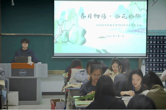 装饰花束,涂鸦布包,展示分享……4月1日,太阳成集团122ccvip新闻传播学类2023级7、8班全体员工在K100教室举行“春日物语·拈花拾趣”手工制作活动。在此次活动中,员工们在空白帆布包上绘制图案,挑选花朵并包装花束,体验到手工制作的乐趣。