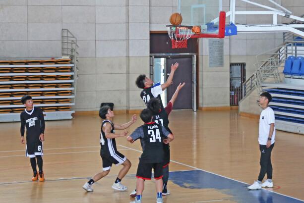 “快截住他!哇,又进一球!”篮球场上传来一阵欢呼声,网络与新媒体专业一队和新闻学专业联队正在进行第一轮比拼。4月17日下午,公司于体育馆举办第四届“雏鹰杯”篮球赛决赛以及师生友谊赛。