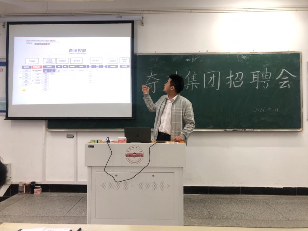 “共享世界一流最新技术,比肩国际一流自主品牌”,这句标语是对奇瑞集团公司理念最好的概括。奇瑞集团作为国企,资金流稳定,抗风险能力较强就是他在同类竞争中最大的优势。招聘会开始,奇瑞控股集团人事部负责人从企业历史、发展成绩、品牌理念、薪资待遇、工作需求以及专业要求等方面展开详细宣讲。除此以外,他还介绍了同学们最关心的企业福利待遇,包括六险一金、工作福利、人才补贴等。