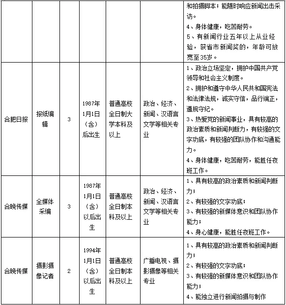 2.合肥报业传媒集团对本次招聘享有解释权。