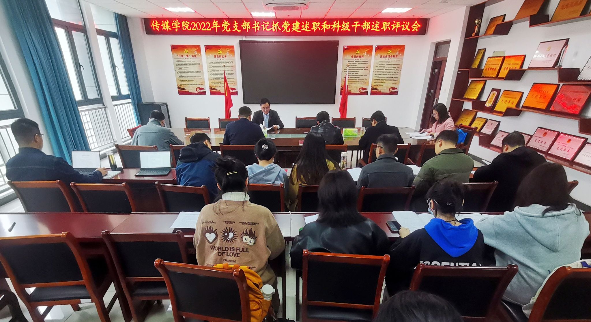3月8日,太阳成集团122ccvip召开2022年度党支部书记抓党建述职和科级干部述职评议会,公司7个党支部书记和5位科级干部一一进行了现场述职。公司党委委员、纪委委员、各党支部书记、科级干部以及师生代表参加了现场评议考核。会议由公司党委书记詹德全主持。