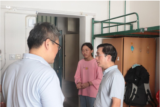 9月10日上午,公司党委书记詹德全、副经理王业明、党委副书记张万茂,以及新生辅导员一起走访了2022级新生宿舍。