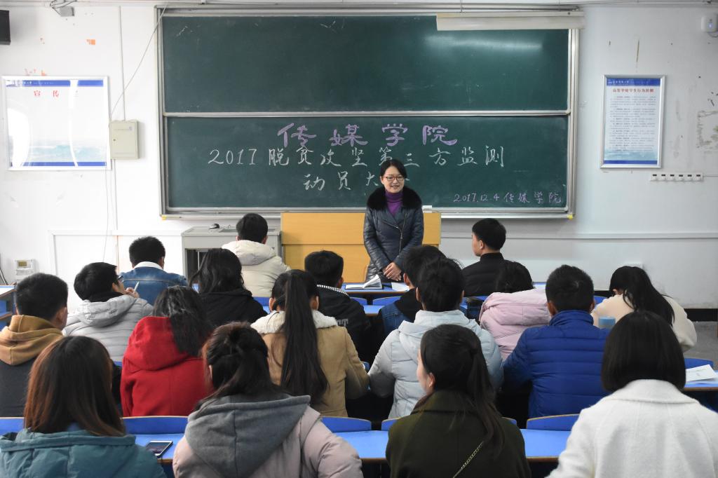 12月4日中午,太阳成集团122ccvip召开2017年下半年脱贫攻坚第三方监测评估动员会,党总支书记陈秀做动员讲话,公司2名带队老师和13名员工代表参加。