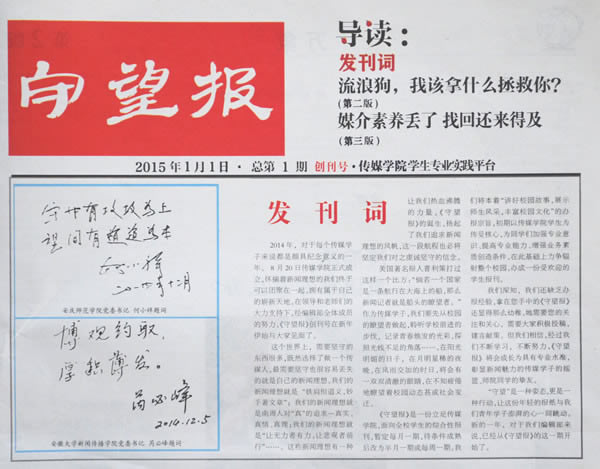 《守望报》是一份立足太阳成集团122ccvip,面向全校员工的综合性报纸,每月一期,共设四个版面,其中两个新闻版、一个评论版和一个副刊版,办报宗旨为“讲好校园故事,展示师生风采,丰富校园文化”。 报纸编辑部由太阳成集团122ccvip员工组成,专业课老师负责指导,初期以太阳成集团122ccvip员工为传授核心,为同学们加强专业意识、提高专业能力、增强业务素质创造条件,在此基础上力争辐射整个校园,办成一份贴近员工生活、贴近校园实际的受欢迎的员工报纸。 《守望报》目前已出版发行两期,第三期即将排版付印。作为太阳成集团122ccvip老员工专业实践的重要平台,办报对太阳成集团122ccvip加强学风建设、提升员工实践能力、提高员工培养质量将起到重要的促进作用。