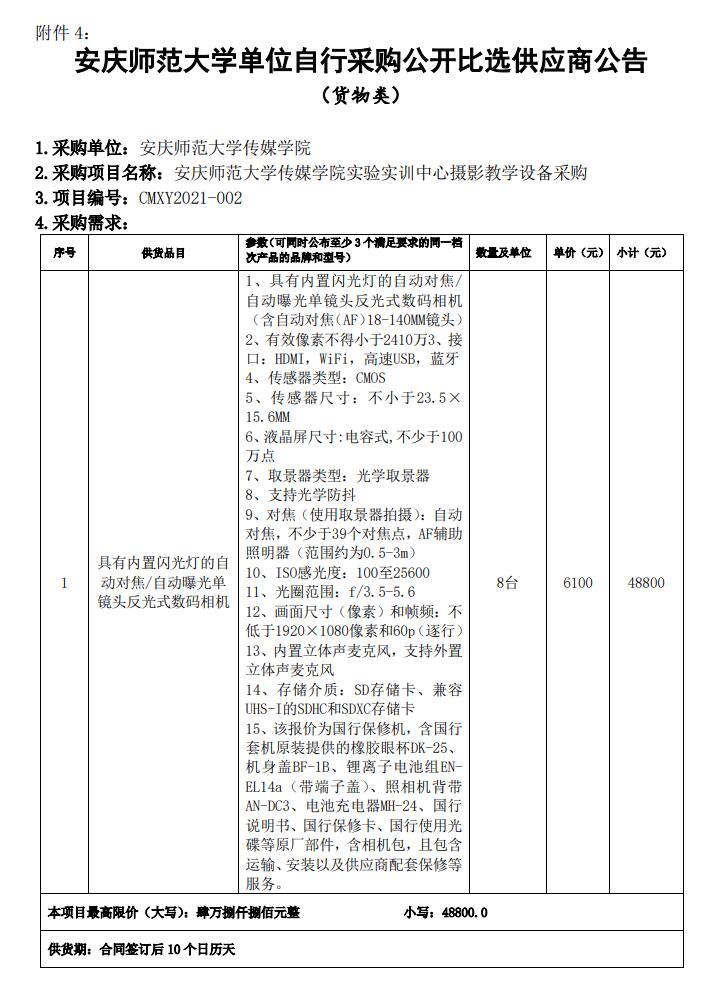 太阳成集团122ccvip摄影教学设备采购公开比选供应商公告