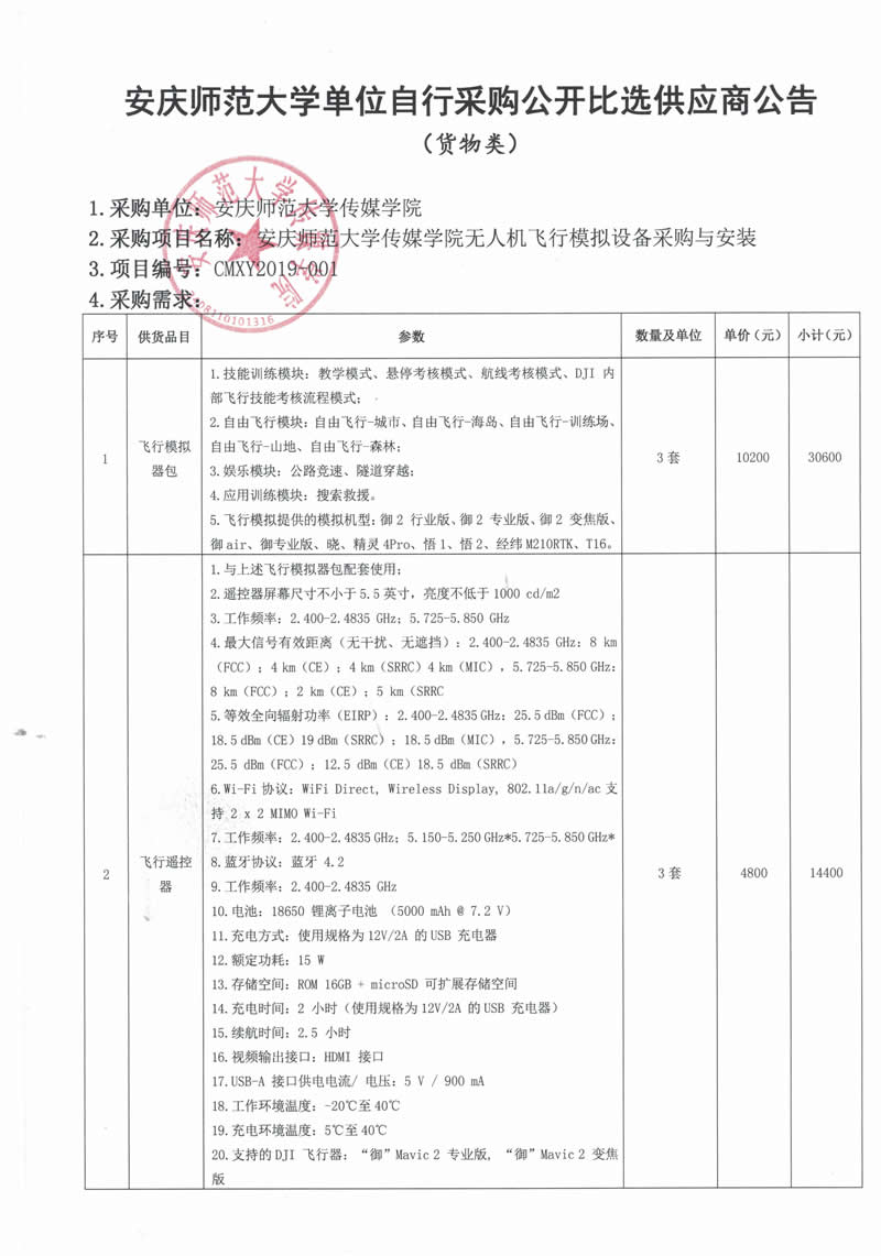太阳成集团122ccvip无人机飞行模拟设备采购与安装公开比选公告