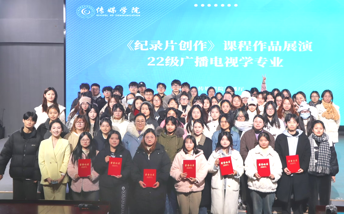 经评委评议,广播电视学专业2022(2)班李武等创作的作品《伞文诗》荣获一等奖;广播电视学专业2022(1)班郭墨香等创作的作品《旧时光中的宝藏》和广播电视学专业2022(2)班周妍等创作的作品《泥火筑新》荣获二等奖;广播电视学专业2022(1)班王远金等创作的作品《岁月守艺人》、广播电视学专业2022(2)班倪恒江等创作的作品《微韵雕刻》和广播电视学专业2022(2)余丹丹等创作的作品《戏梦人生》荣获三等奖。