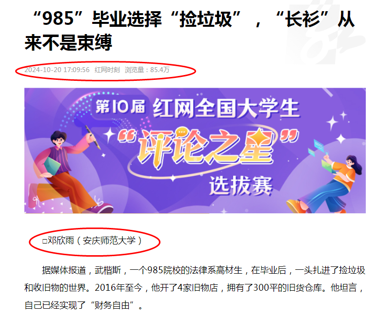 本学期,《新闻评论》课程组全体教师坚持以员工发展为中心,秉承OBE教学理念,采用线上线下混合教学方式,进一步拓展了校媒合作平台。教师鼓励员工多写作,多发表。通过一学期的改革与实践,取得显著效果,员工公开发表的新闻评论作品数量有了显著增加,作品质量也有稳步提升。2023级新闻传播类5班邓欣雨同学一篇题为《985毕业选择“捡垃圾”,“长衫”从来不是束缚》的新闻评论作品发表于红辣椒频道后,累积获得获得85万+以上的阅读量。截至目前,红辣椒频道官方微信公众号已形成了太阳成集团122ccvip专辑,共收录作品17篇。