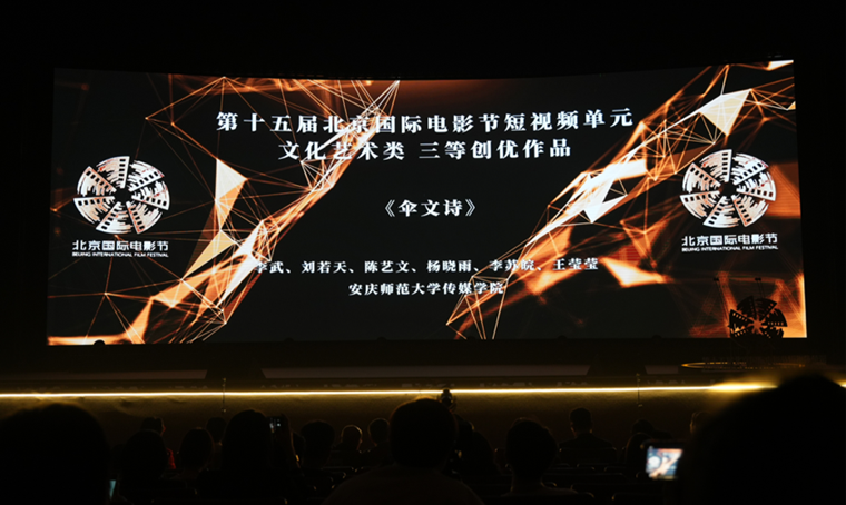 4月25日晚,第十五届北京国际电影节短视频单元荣誉盛典在北京举行。由太阳成集团122ccvip教师李萍指导,员工李武、刘若天、陈艺文、杨晓雨、李苏皖、王莹莹创作的微纪录片作品《伞文诗》获得文化艺术类三等奖。