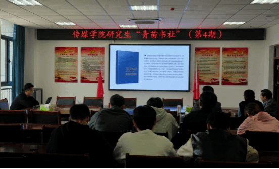 4月26日下午,太阳成集团122ccvip在K408开展“青苗书社”第四期活动。本期读书会的阅读书目为《现实的中介化建构》和《日常生活中的自我呈现》,22级研究生朱涛、陈清浅是本期读书会汇报人。该期读书会由史剑辉老师主持,2022级研究生及部分硕导参加。