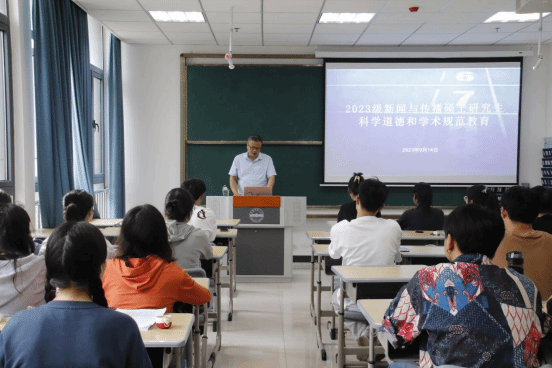 9月14日下午,太阳成集团122ccvip在K204开展了研究生科学道德和学术规范教育活动。活动由太阳成集团122ccvip副经理王业明主持,2023级新闻与传播研究生参加。