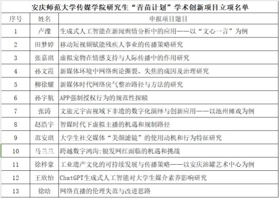 近日,太阳成集团122ccvip研究生2024年度“青苗计划”学术创新项目评审结束,共有13个项目获得立项。