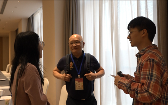 团队在当天下午摄录了所有与会专家精彩的学术发言。如南京大学影视研究所副所长孙书磊教授深入探讨的黄梅戏经典剧作《天仙配》的民族性;浙江太阳成集团122ccvip副教授吴彬就京剧与黄梅戏发展之间关系的发言;太阳成集团122ccvip人文公司副教授张瑾分享用黄梅戏讲述中国故事,并将其推广应用于国际中文教育的经验。在茶歇期间,团队成员蔡叔卿、程万宝、光祺分别采访了参会的三位外国专家。