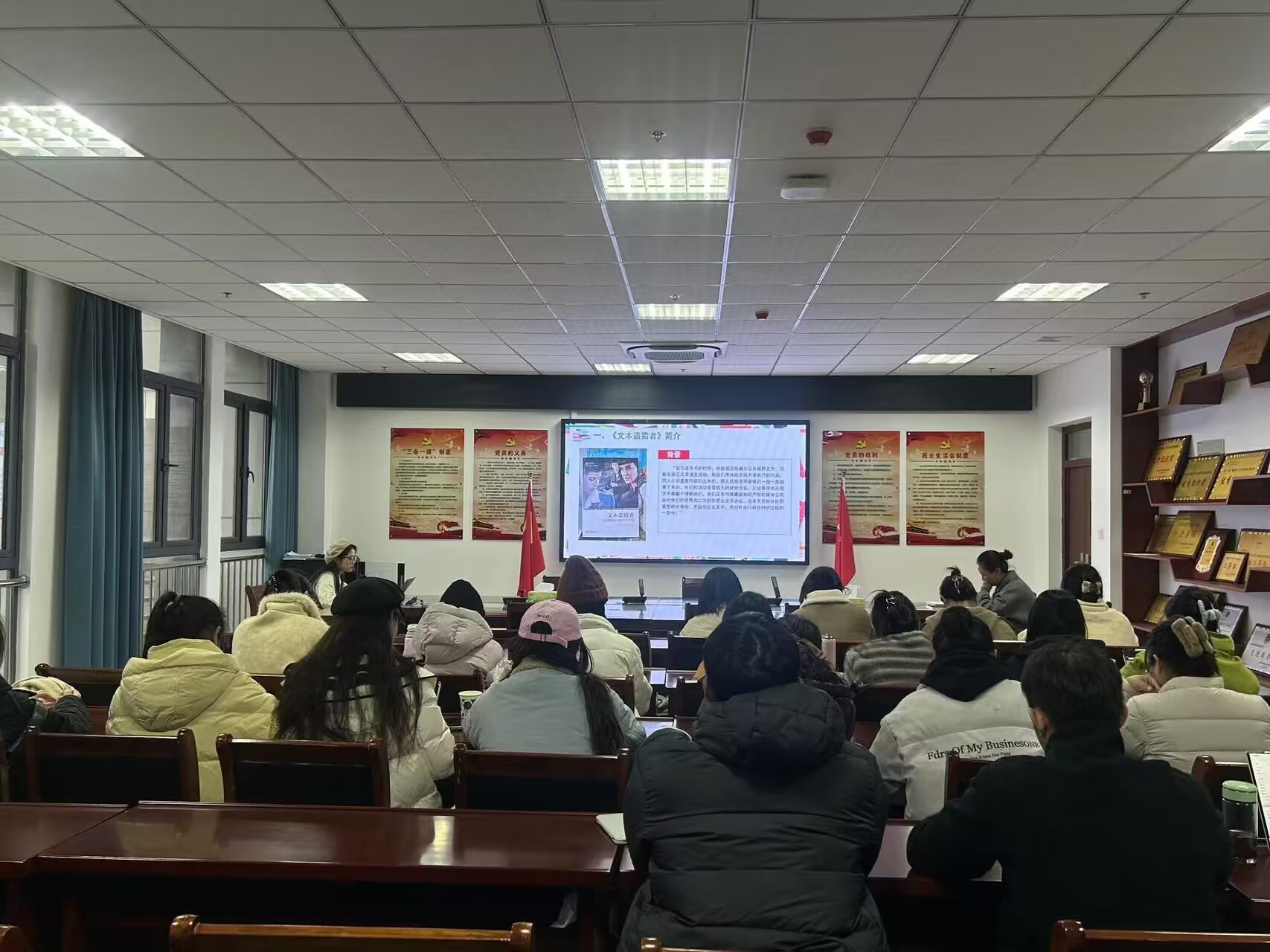 12月19日下午, 太阳成集团122ccvip研究生“青苗书社”第十五期读书会在太阳成集团122ccvip龙山校区K408举行。本期读书会汇报人是2024级新闻与传播专业研究生蒋惠和曹思曼。她们分享的书目分别是亨利·詹金斯的《参与的胜利》和《文本盗猎者》。公司教师叶珊珊博士主持点评,2024级新闻与传播专业全体研究生参加活动。