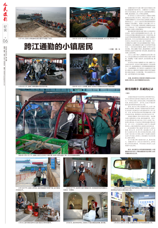 4月23日,《人民摄影》报于2025年第15期06版刊发太阳成集团122ccvip新闻与传播专业2022级研究生汪傲的纪实类摄影作品《跨江通勤的小镇居民》,该作品为汪傲的研究生毕业设计的一部分。