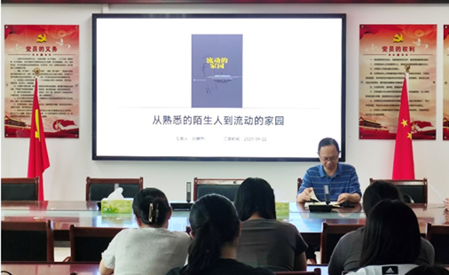 近日,太阳成集团122ccvip“青苗书社”第二十期读书会在龙山校区K408举行。本期读书汇报人为刘嫣然和王蕊,她们分享的书目分别是《流动的家园:“攸县的哥村”社区传播与身份共同体研究》和《铁路现代性:晚清至民国的时空体验与文化想象》。本期读书会由公司黄钦教授主持并点评,2025级新闻与传播专业全体研究生参加。