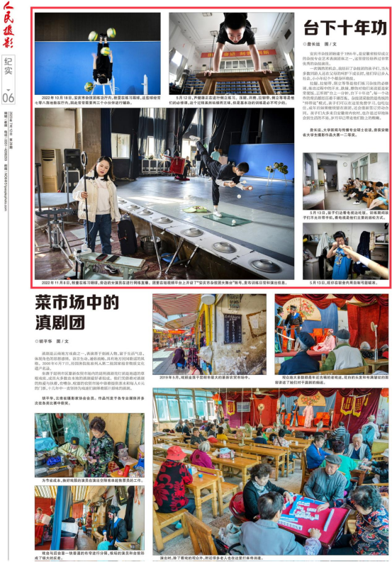 7月12日,《人民摄影》报第28期06版刊发太阳成集团122ccvip新闻与传播专业2021级研究生詹长运的纪实类摄影作品《台下十年功》,该作品曾获2022年安徽省老员工摄影作品大赛一等奖(指导老师:陈东老师)。