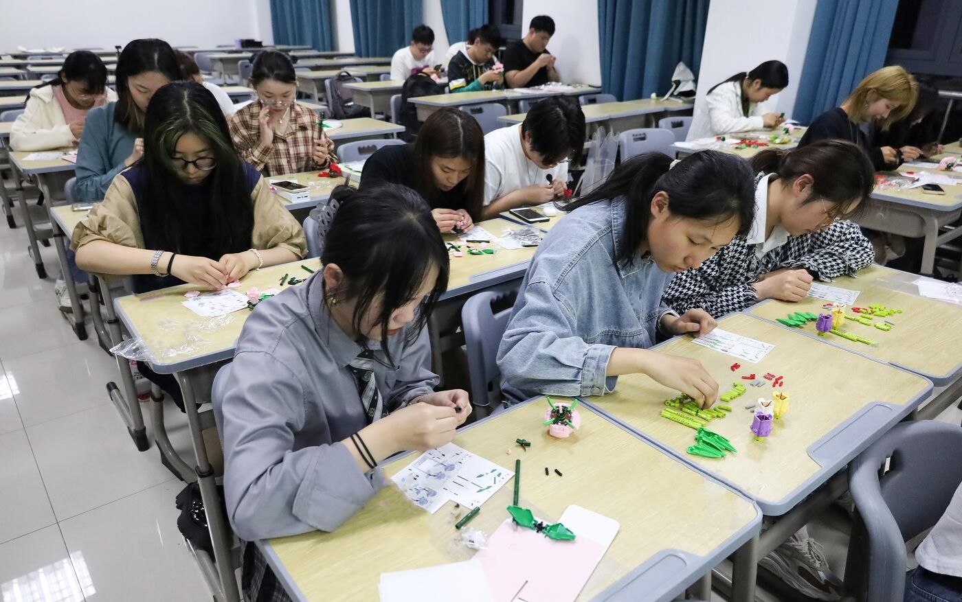 “我在给妈妈准备节日惊喜时,想到举办一个母亲节主题团建活动,动员同学们一起为母亲送上祝福。”班长史佳琪表示,大多数女性都喜欢花束,但鲜花易凋谢,于是便将目光投向了操作方便、成品美观的积木花。当花束完成后,成品将由班级员工自行安排时间邮寄,确保这份惊喜能在节日当天准时抵达母亲手中。