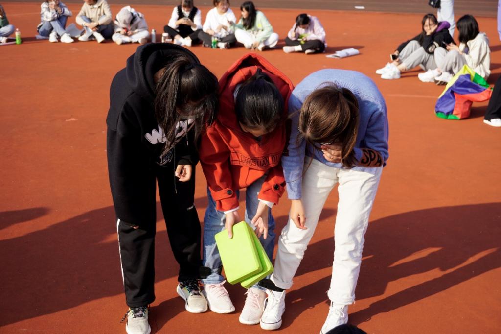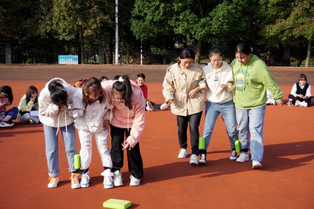 在“传呼啦圈”环节中,七人组队手牵手,小组成员逐个穿过呼啦圈实现传递,最后一位传递者需要将呼啦圈转三圈。由于身高较高,新闻传播学类专业2021(5)班的张翔宇在传递呼啦圈时被卡住。“我平时不经常接触呼啦圈,在传递的过程中耽误了一些时间。”他表示,虽然没有赢得游戏,但他加深了与同学们之间的了解。