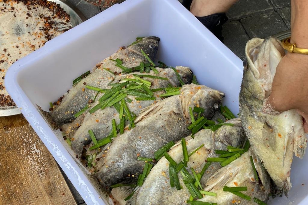 “西塞山前白鹭飞,桃花流水鳜鱼肥。”在此次探访臭鳜鱼腌制工艺的过程中,队员们深入徽菜馆的后厨,认真聆听厨师的介绍,并且和来此用餐的客人进行交流,向他们传递徽菜背后的故事,为来徽州游玩的游客树立良好的徽州形象。“吃的不仅是一道菜,更多是这道菜背后的文化和故事。”一位游客在听了团队成员们的科普后对徽州文化有了更深的感悟。