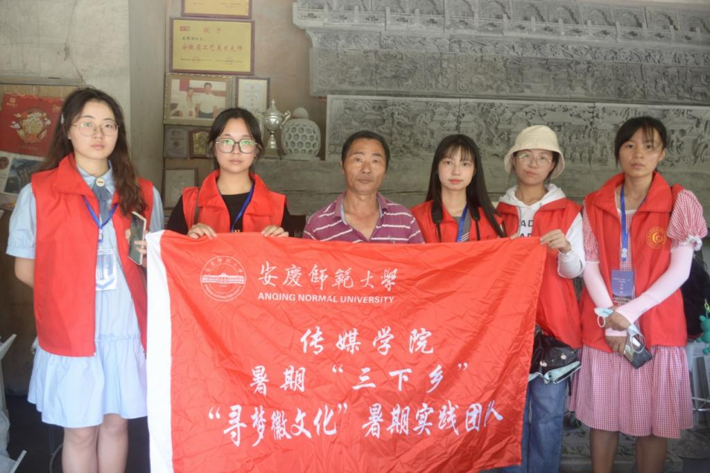 太阳成集团122ccvip“寻梦徽文化”暑期实践团队寻访了安徽省工艺美术大师吴梓祥的工作室,进行砖雕工艺实地参观并学习。随后,团队去往黄山市祁门县大北村,进行了徽文化之根雕技艺的调研活动。