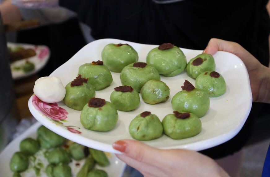 “我们家清明节会吃蒿子粑。”“我们家那边清明节都会放风筝。”……由于来自不同的地方,员工们也在互相分享着不同地区的风俗习惯。在此之前,来自安徽淮北的闫如玉从来没有吃过青团,在了解到此次活动要制作青团后,她特意从网上查找了相关资料。“青团的面很粘手,在同学们的提醒下我才知道得用熟食粉抹在青团表面。”