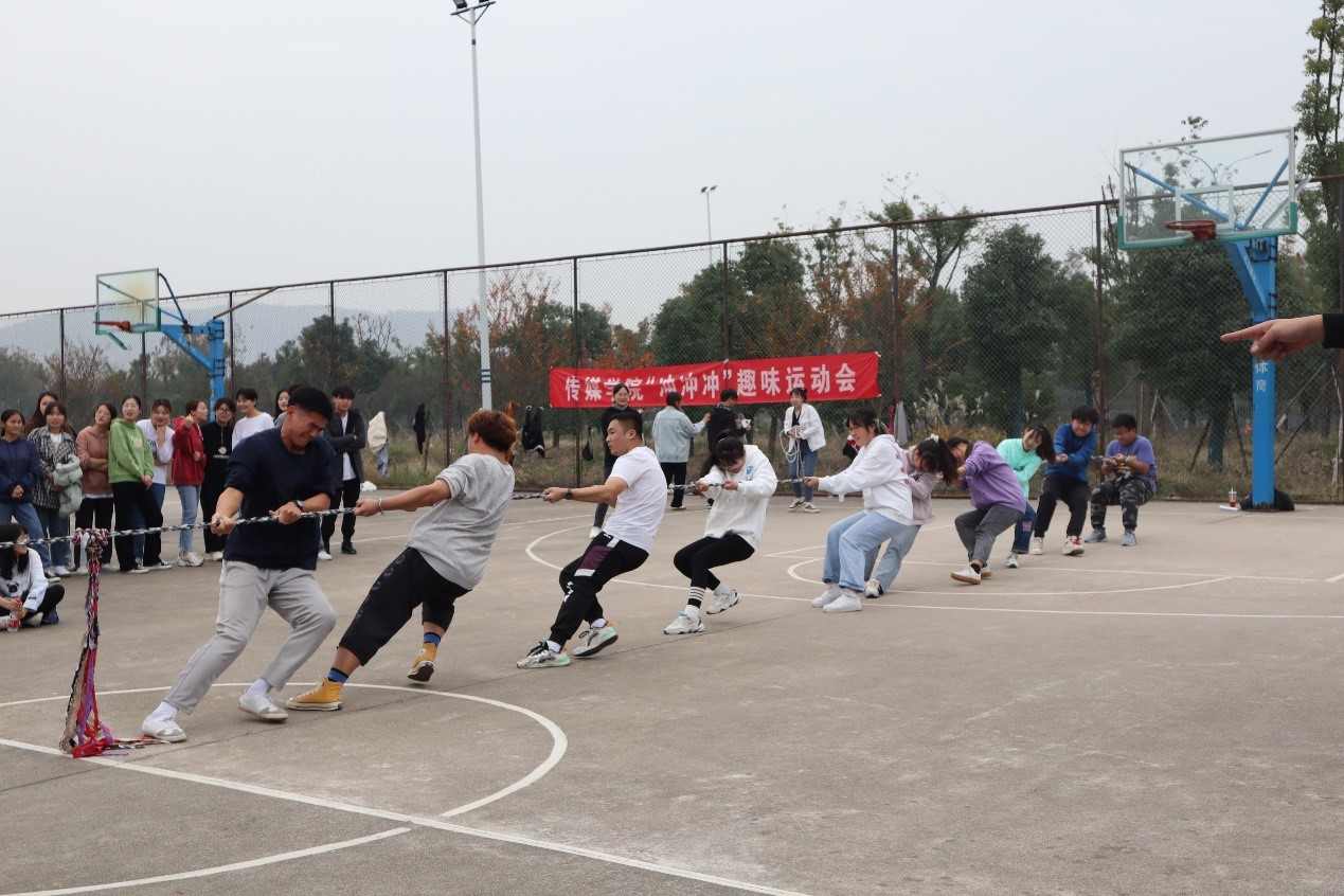 拔河比赛是本次趣味运动会参与人数最多的项目。各队伍抽签分组比赛,决出八强,经过交叉赛晋级四强,最终角逐前三名。网络与新媒体2020级1班的赵宇艇及其队友获得了该项目第一名。“队友之间的默契合作是我们此次获胜的关键。”回忆去年的比赛,他遗憾队伍止步四强,今年他们总结经验,提前商量策略。“今天夺冠真的非常激动,这是一场难忘的趣味运动会。”