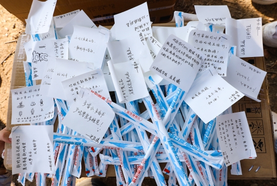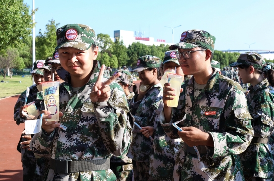 军训休息之余,2023级新生辅导员们给公司参训新生分发柠檬水,并与新生积极交流,关心他们的身体状况和生活情况。新生们秩序良好,以班级为单位领取饮品后,不断向老师们道谢。