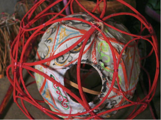 村书记还向我们展示了舞狮灯中的灯球,“灯球”在传统的舞狮表演中扮演着至关重要的角色。它不仅是引导狮子动作的关键道具,也是舞狮表演中增添视觉效果的重要元素。实践团了解到,灯球都是由村民手工制作,它的设计和使用,充分体现了中国传统文化的智慧和审美。在谈及舞狮灯这项非遗传统文化活动的发展时,吕彦水书记表示:现在的表演者和传承人多为中老年人,他们有丰富的表演经验和制作手艺。然而,随着年龄的增长,他们逐渐退出舞台,年轻一代未能及时接棒,传承与发展成为一个亟待解决的问题。