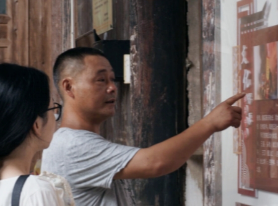 图为实践团成员在村书记带领下参观了解舞狮的工具