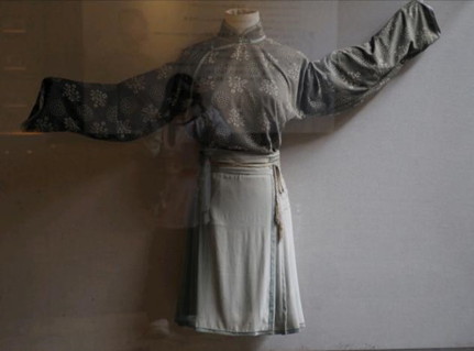 图为洪雪飞的戏服展览