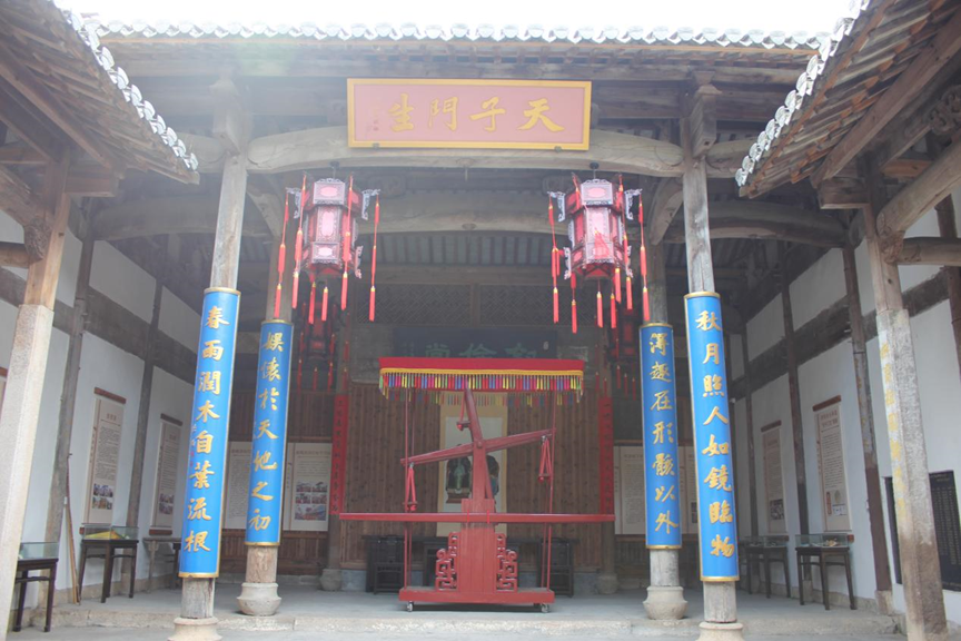 图为白石源金石村洪氏宗祠内景,壁挂当地民俗文化宣传框