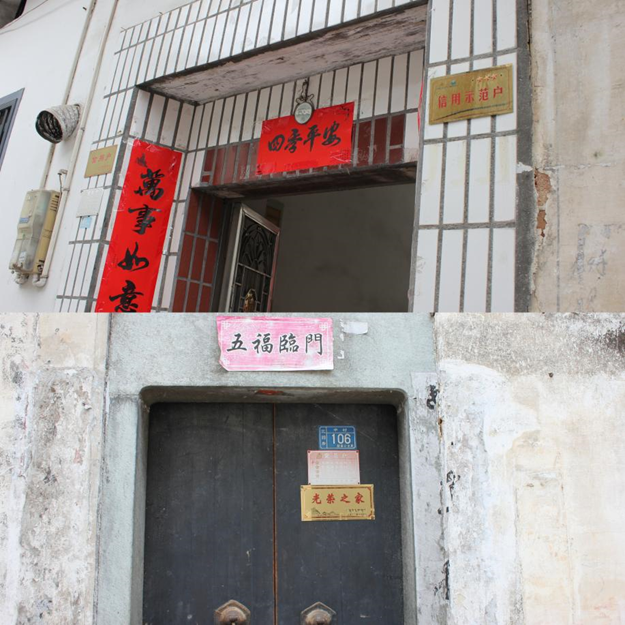图为当地村民门户悬挂“信用示范户”“光荣之家”牌匾