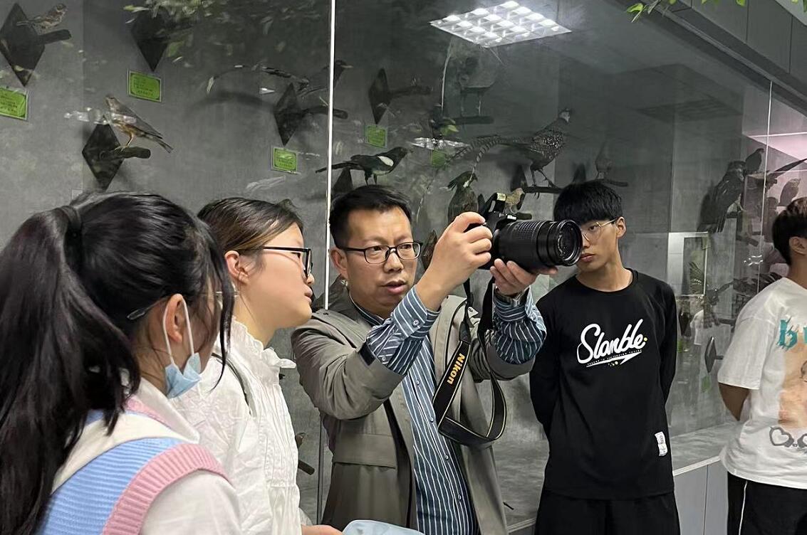 “老师,请问一下室内如何调亮光线?”“老师,拍标本构图怎么才合理呀?”……面对同学们的提问,《新闻摄影》任课老师雒有谋,用相机给员工们操作演示,将课堂搬进标本展馆,同学们纷纷表示,这样的课真是收获满满!