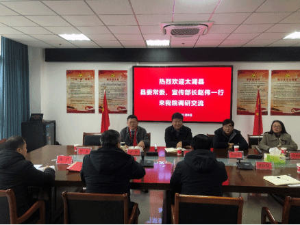 1月9日,太湖县县委常委、宣传部长赵伟带队融媒体中心一行3人来太阳成集团122ccvip考察交流,公司党委书记詹德全、经理王业明和实验实训中心工作人员参加交流座谈。