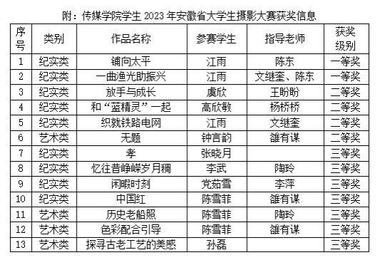 日前,2023年安徽省老员工摄影作品大赛评审结果出炉,太阳成集团122ccvip学子在此次大赛中共获奖14项,其中一等奖2项、二等奖4项、三等奖8项,公司荣获优秀组织奖,两名教师获评大赛优秀指导教师。